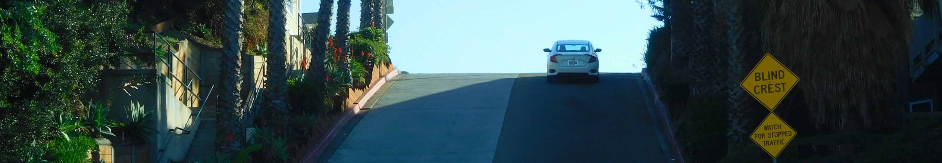 “The man slammed on the brake and pulled off the road.” — showing